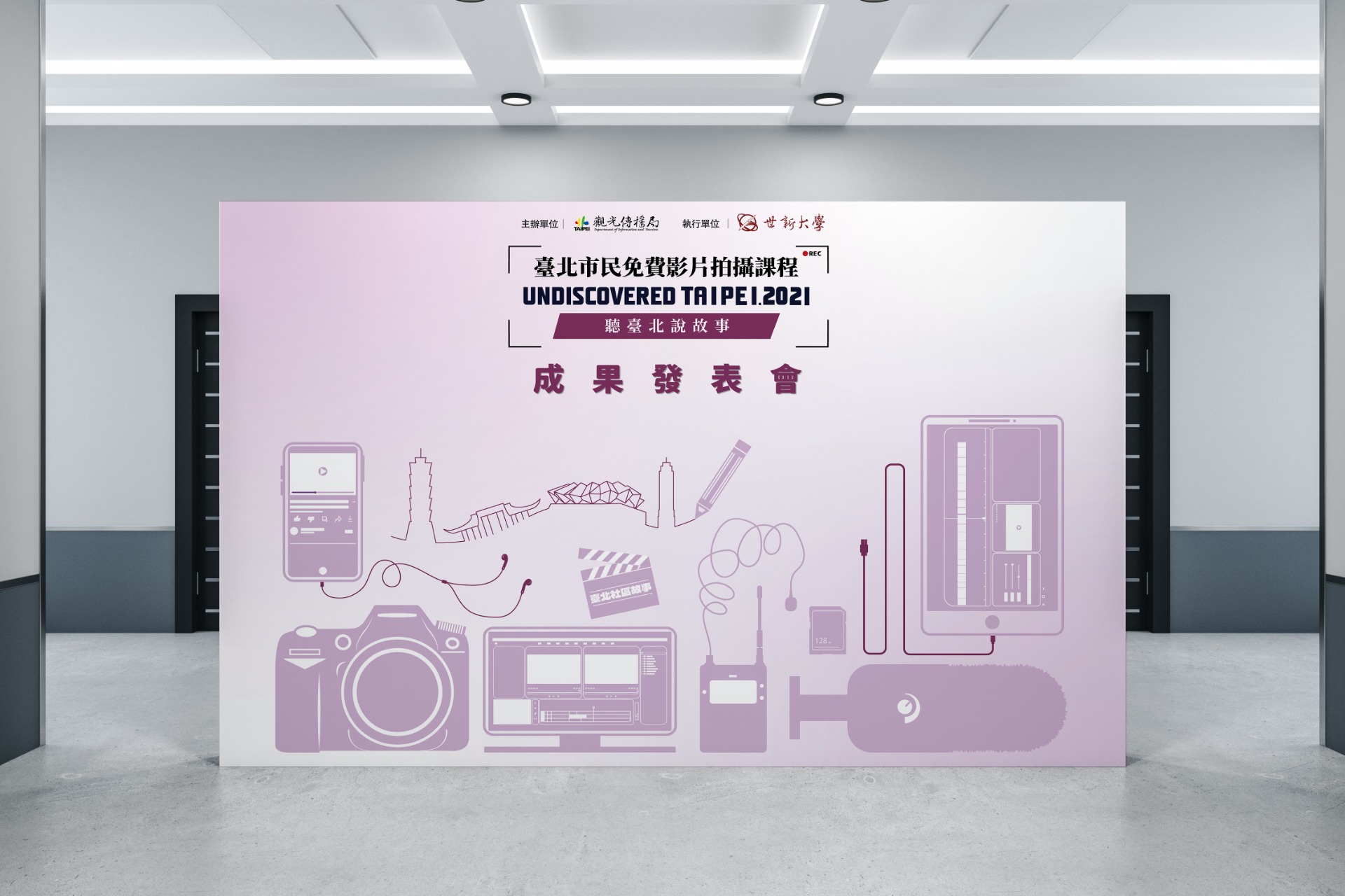 搭配課程性質將影像會有的器材、設備、剪輯畫面等編排進畫面中讓民眾一眼知道課程的主題。