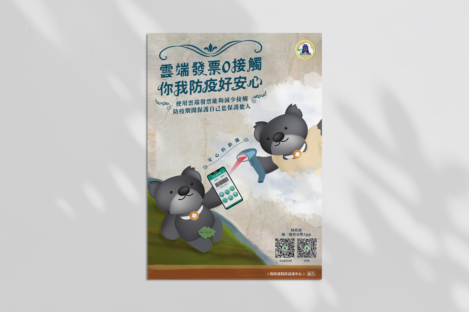 正值COVID-19疫情期間為了強調雲端發票是可以減少消費時與店員的實體接觸,以米開朗基羅經典名作《創世紀》做為參考設計財政資訊中心吉祥物「VAVA熊 」版本的《創世紀》 那微妙的距離就是你我消費時安心的距離。